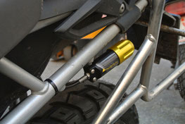 In Zusammenarbeit mit dem niederländischen Fahrwerksspezialisten Tractive hat Touratech ein Federbein speziell auf die Bedürfnisse Fernreisender entwickelt. Das Federbein ist in Zug- und Druckstufe justierbar und arbeitet mit einem Trennkolbendämpfer, der laut Herstellerangaben ein feineres Ansprechverhalten, präzise Dämpfleistung und eine bessere Kühlung garantieren soll. Beim Level-2-Modell lässt sich die Federvorspannung (15 mm Hub!) bequem per Handrad verstellen, das ich am Stahlgitterrohramen der XC befestigte. Komplett wird die Fahrwerksverbesserung aber erst mit den progressiven Gabelfedern vorne, die Touratech ebenfalls in Holland bei Hyperpro bauen lässt. Einbauen ließ ich die Teile beim Schrauber meines Vertrauens, Ossimoto in Wien 15., und schon eine erste (flotte) Runde über das Kopfsteinpflaster der Wiener Höhenstraße zauberte mir ein breites Grinsen ins Gesicht: Das ist ein anderes Motorrad, man muss sich förmlich zwingen, nicht über jeden Kanaldeckel zu fahren... ;-)