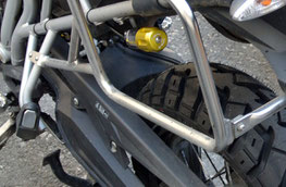 An sich ist das Fahrwerk der XC für die meisten Bereiche eines Motorradlebens absolut ausreichend, so lange man sich auf guten, asphaltierten Straßen bewegt. Auf meinen Reisen, speziell abseits befestigter Wege, voll beladen und/oder bei beherztem Tempo über Rumpelpisten, stieß es aber doch immer wieder mal an seine Grenzen. Daher spendierte ich dem Tiger zum 50.000er an Kilometern ein neues Federbein samt ebensolchen Gabelfedern. Die Wahl fiel auf das Touratech Suspension Level 2, weil das auf der "artverwandten" BMW 800 GS wirklich hervorragend funktioniert und von den Abstimmungen meinen Anforderungen am ehesten entsprechen sollte.