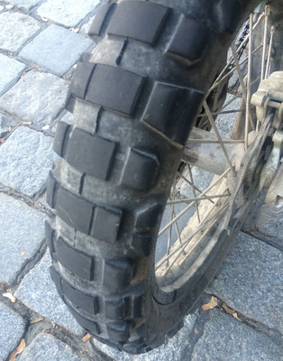 Charakteristik bzw. Einsatzgebiet: Ähnlich wie der bekanntere TKC 80 ist der ebenfalls schon in die Jahre gekommene T63 von Michelin immer noch eine richtig gute Wahl, wenn es um Reisen mit hohem Naturstraßen-Anteil geht. Ich würde den T63 als 50/50-Reifen (befestigte/unbefestigte Straßen) sehen. Da er jedoch nur in einer überschaubaren Anzahl an Dimensionen bzw. ausschließlich als 21/18-Zoll-Bereifung erhältlich ist, kommt er nur für mittelschwere bzw. leichte Enduros in Frage. Dort kann er jedoch sowohl auf der Straße, wo er den Grenzbereich gut ankündigt, als auch auf Schotter mit guten Fahrleistungen aufwarten, seine für einen Stollenreifen ordentliche Laufleistung bzw. Nässeperformance macht ihn für Vielfahrer, die regelmäßig die befestigten Wege verlassen wollen, interessant.